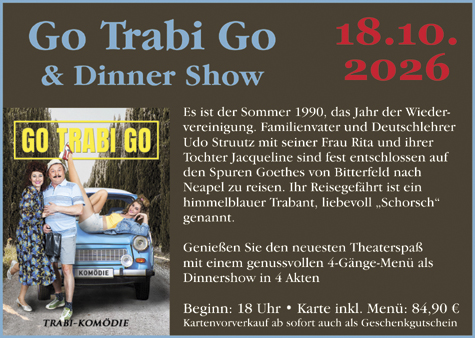 18.10.2026 - Es ist der Sommer 1990, das Jahr der Wiedervereinigung. Familienvater und Deutschlehrer Udo Struutz mit seiner Frau Rita und ihrer Tochter Jacqueline sind fest entschlossen auf den Spuren goethes von Bitterfeld nach Neapel zu reisen...