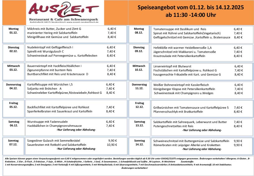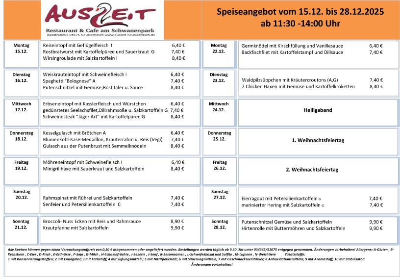 25.12 + 26.12.2025 - 11.00 + 13.15 Uhr traditioneller weihnachtlicher Mittagstisch