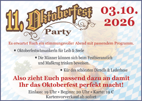 03.10.2024 - Es erwartet Euch ein stimmungsvoller Abend mit passendem Programm.