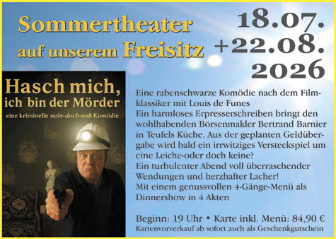 24.01.2026 - Nach knapp 300 Vorstellungen von "Die Olsenbande-mächtig gewaltig!" darf die Olsenbande einen neuen Coup landen. Wie immer hat Egon einen genialen Plan, der so totsicher ist wie der Tod selber...